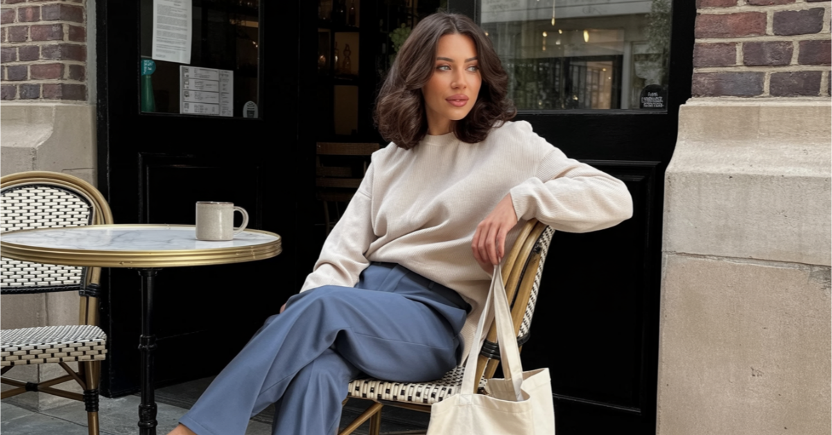 You’ve gotta try this navy sweater with white mom jeans for a bookstore date! It’s so chic and cozy for browsing shelves. Pair with a structured tote and loafers for a bookish look.