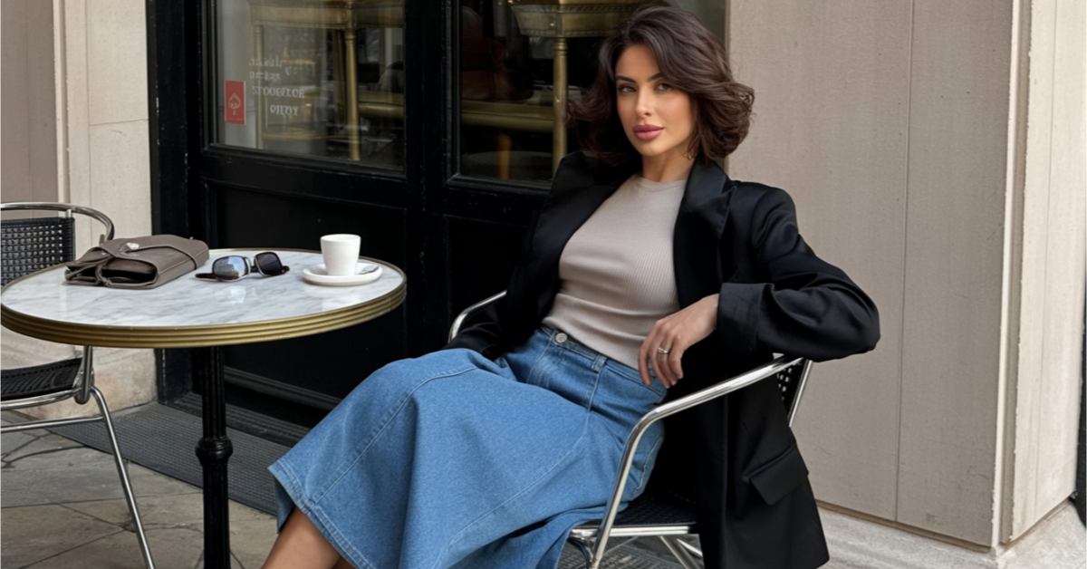 This midi denim skirt with a beige cardigan is perfect for a cozy book club meet-up! I’m obsessed with how soft it feels. Add a delicate necklace and loafers for a sweet, polished touch.
