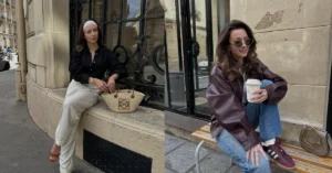 This orange two-piece set is so bold for a Napa Valley wine tour! I’d wear it to feel like a fashion star. Add gold jewelry and a high pony for a vibrant, chic look.