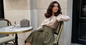The brown leather jacket paired with a simple white crop top and black skirt is chic. I love how the jacket adds an edgy touch while still keeping it effortlessly stylish. It’s perfect for a city stroll, blending classic vibes with modern flair.