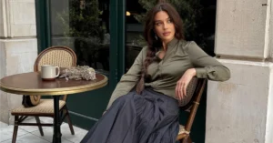 The way the satin skirt flows effortlessly paired with those chic knee-high boots is just stunning. The simple white crop top and light jacket give it a fresh yet nostalgic feel. This combo captures that perfect blend of modern and vintage that I absolutely adore.