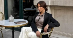 Girl, these white flowy pants and black neckholder top are a chic lawyer outfit! They’re ideal for a summer day at the office when you want to look fresh. Add gold hoops and a structured blazer for extra polish.