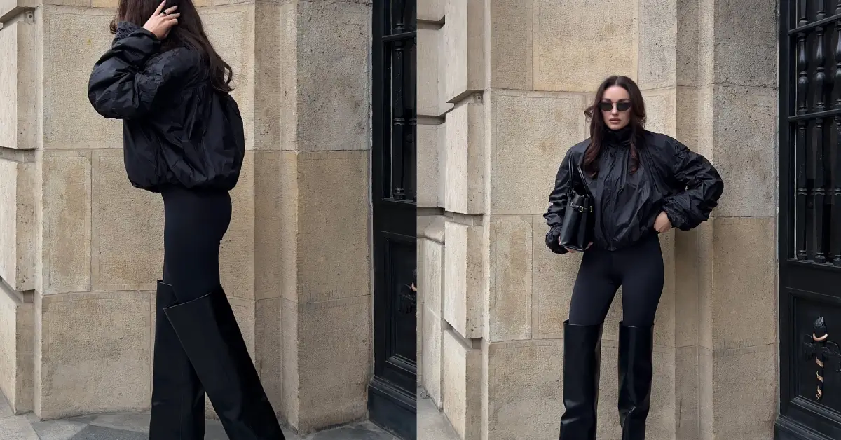 The black boots and matching handbag add a sleek touch, and the sunglasses give it a modern edge.