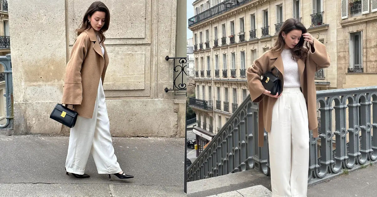 This beige blazer with black pants is screaming quiet luxury. It’s ideal for a semi-formal meeting or a nice work dinner. Style with a silk scarf and delicate jewelry to keep it soft but confident.