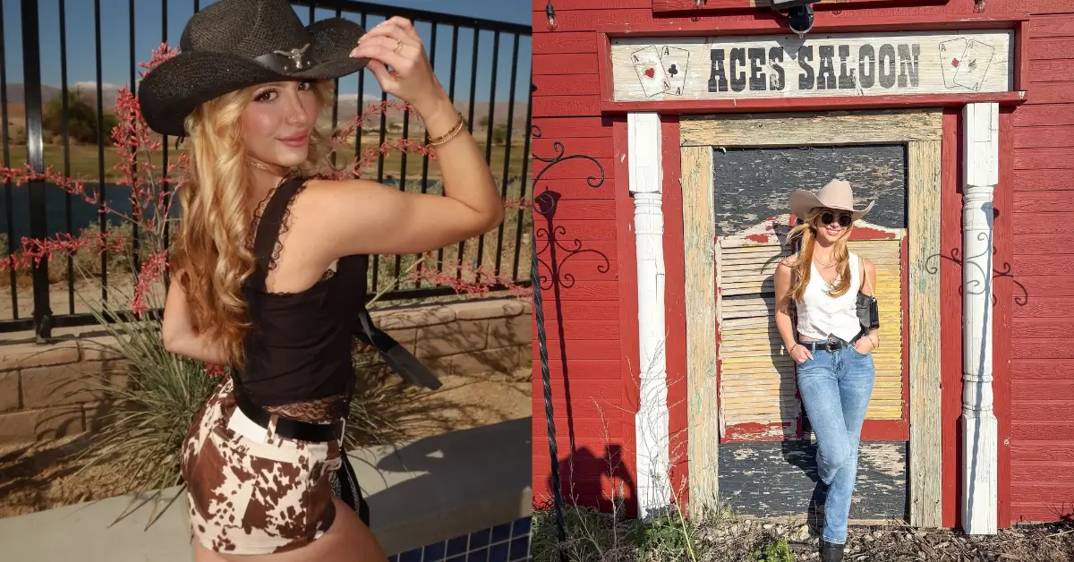 Brown Cowgirl Boots with Denim on Denim Outfit