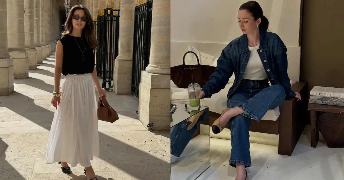 This cream silk skirt with a black vest top is such a sleek silk skirt outfit! You’ll look so sharp at a chic rooftop gallery event. Pair with gold hoops and a structured tote for a polished, artsy style.