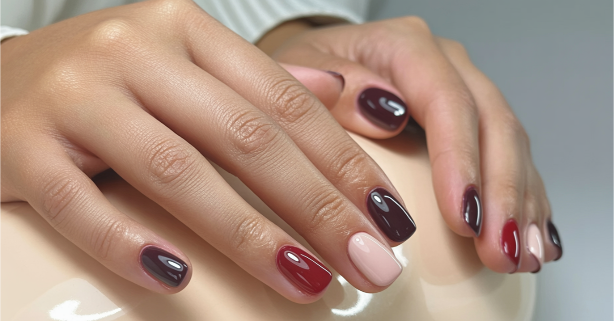 Okay, these different-shaped cherry red nails are too cool! I can’t get over the mix of shapes rocking that deep, cherry red glow, like a cozy fall drink.