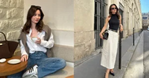 This light blue satin maxi skirt with a white top is so dreamy for a sunset wine tasting! I’m obsessed with how flowy and chic it feels. Pair with strappy sandals and a delicate necklace to glow.